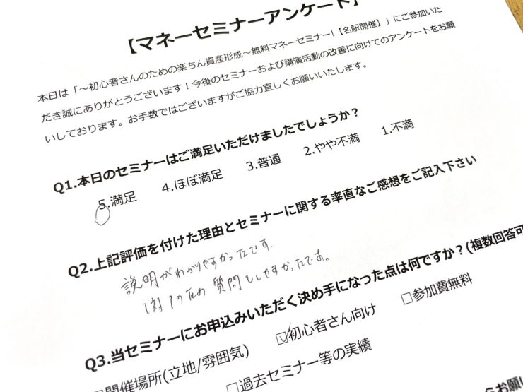 今回ご参加者さんの中にはすでに新NISAを始めている方もいらっしゃいましたが、なんとなく始めていた感覚が理解を深める機会になったとおっしゃってもいただけまして有難きお言葉ですm(__)m